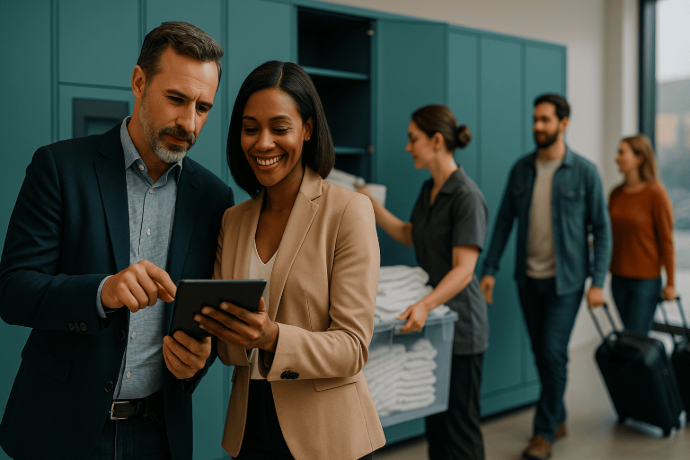 - Reserved lockers near your properties for linens, towels, consumables, keys, or small equipment